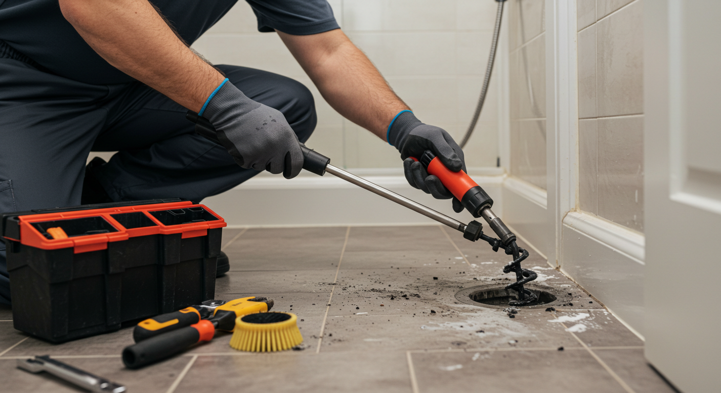 A professional plumber uses advanced tools like hydro jetting and drain snakes to completely remove clogs and prevent recurrence.
